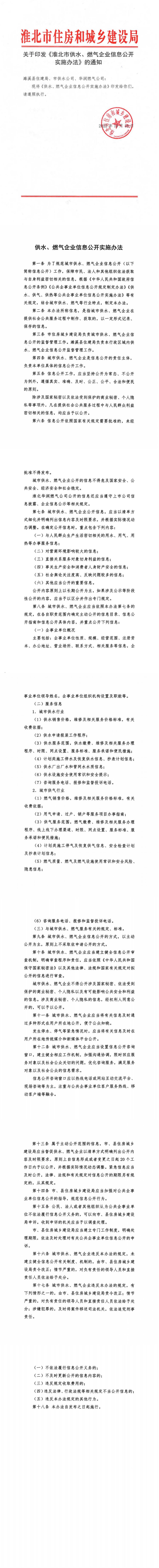 關于印發(fā)《淮北市供水、燃氣企業(yè)信息公開實施辦法》的通知