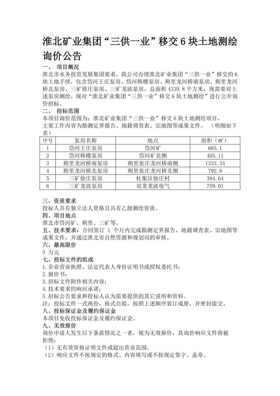 淮北礦業(yè)集團(tuán)“三供一業(yè)”移交6塊土地測(cè)繪詢價(jià)公告