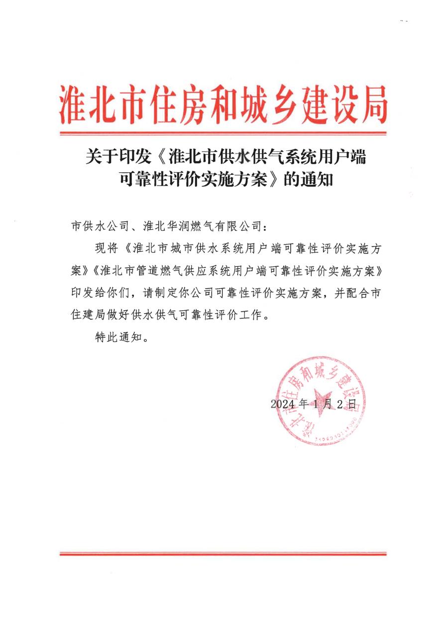 關(guān)于印發(fā)《淮北市供水供氣系統(tǒng)用戶端可靠性評(píng)價(jià)實(shí)施方案》的通知