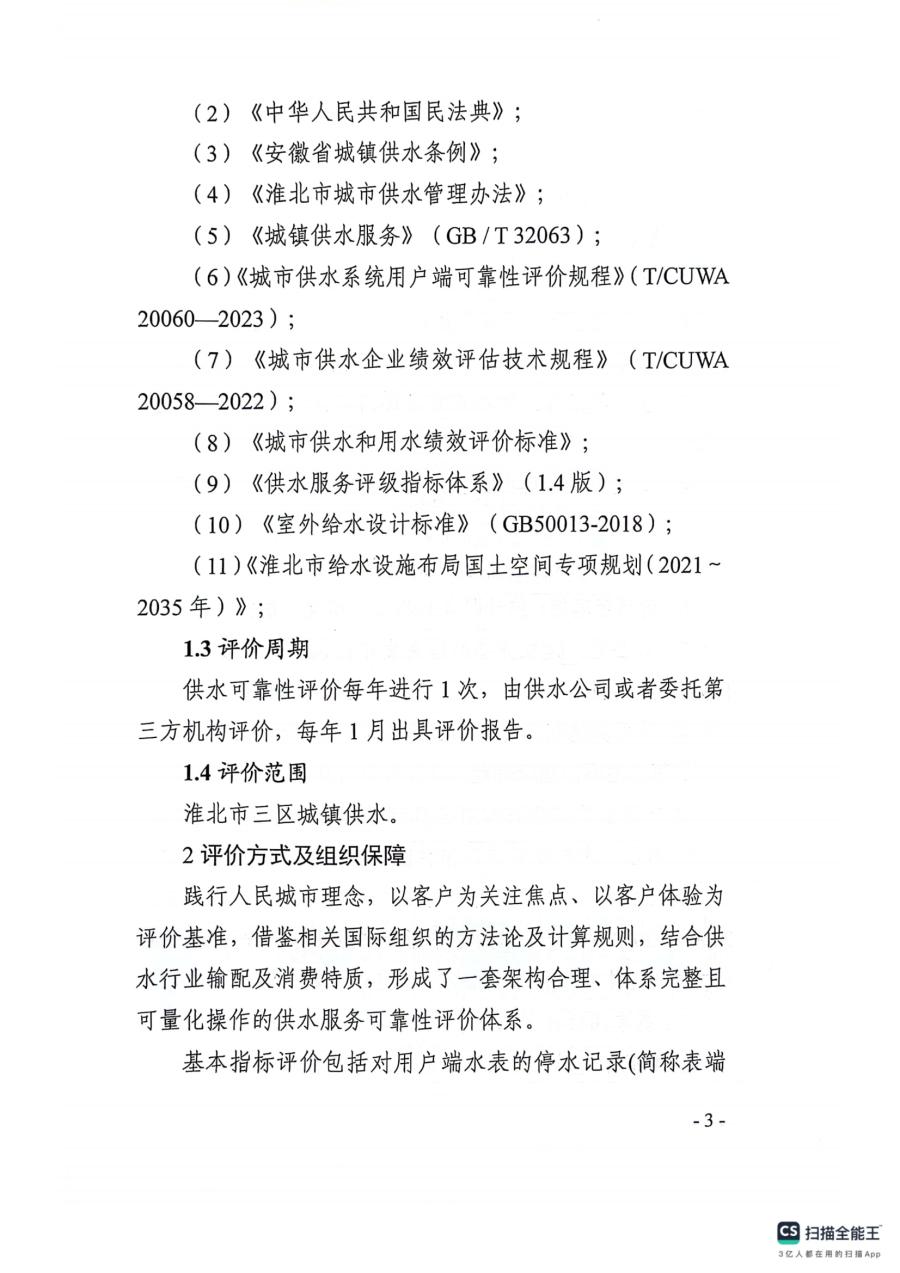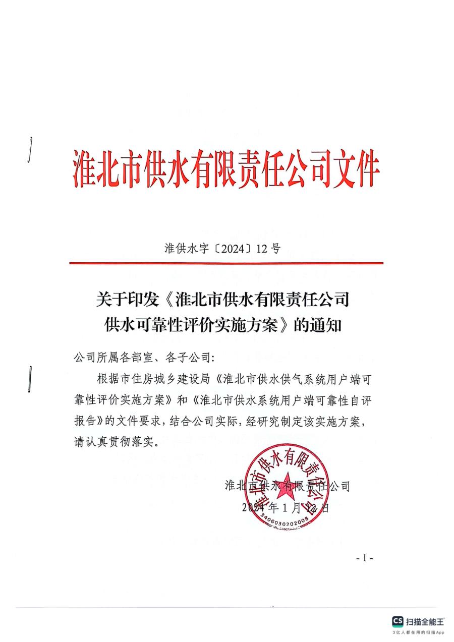 關(guān)于印發(fā)《淮北市供水有限責(zé)任公司供水可靠性評價(jià)實(shí)施方案》的通知