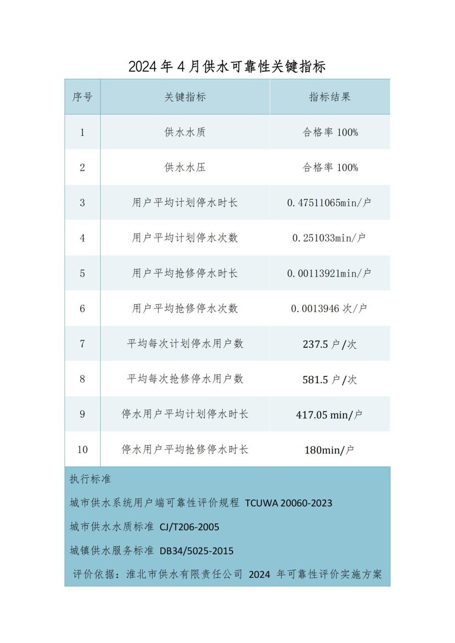 2024年度4月份淮北市供水可靠性關(guān)鍵指標(biāo)