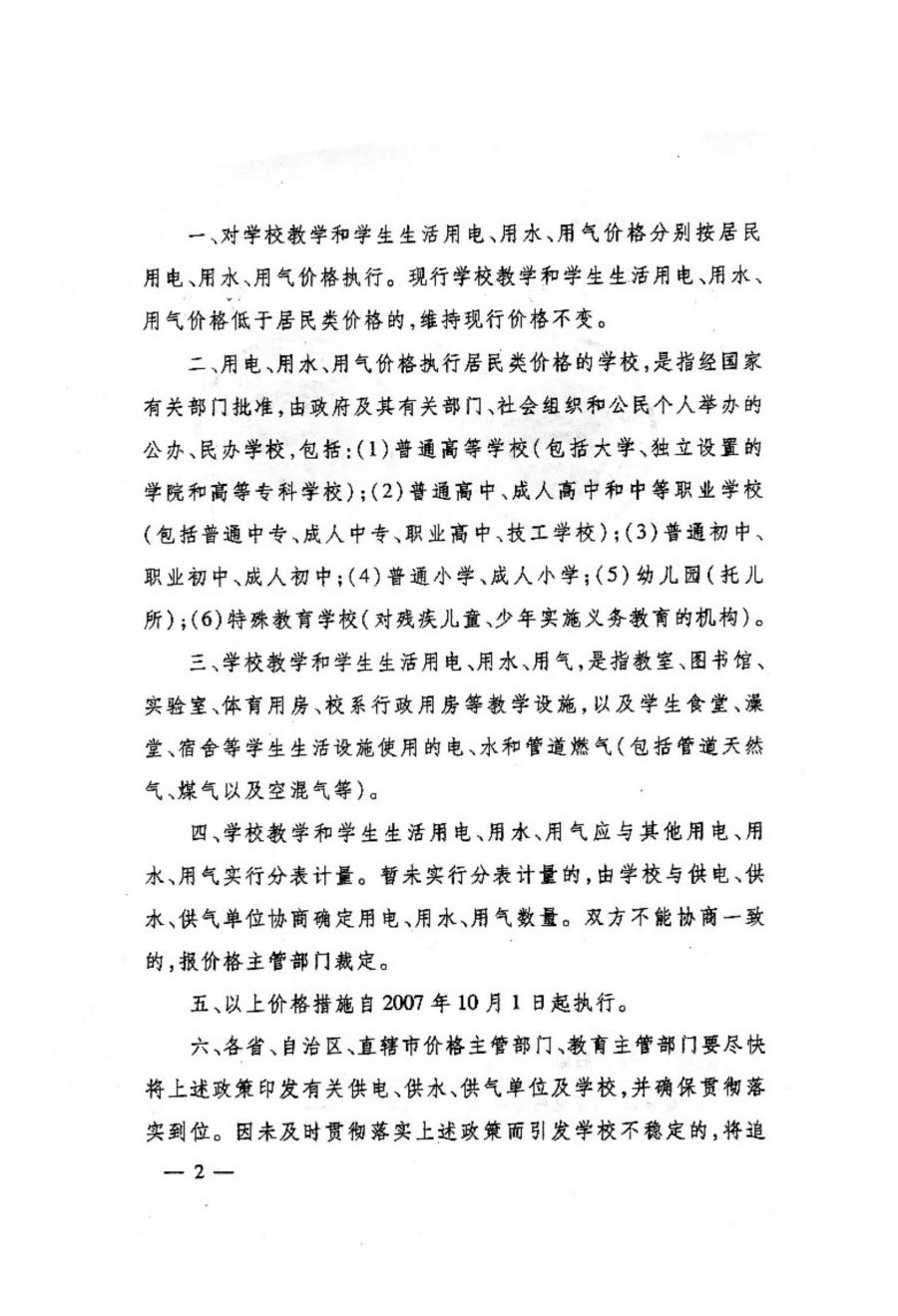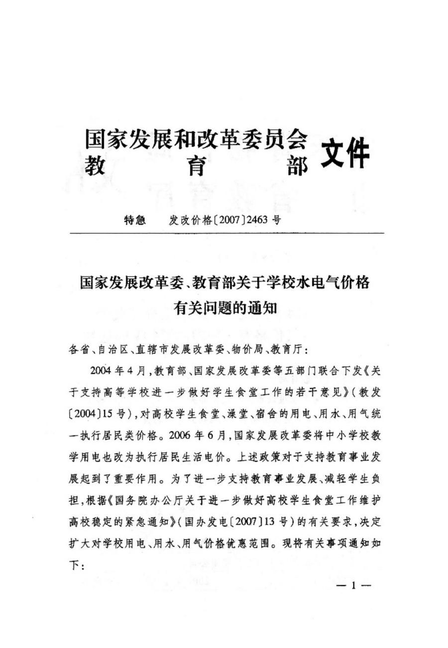 國家發(fā)展改革委、教育部關(guān)于學(xué)校電氣價格有關(guān)問題的通知 發(fā)改價格【2007】2463號