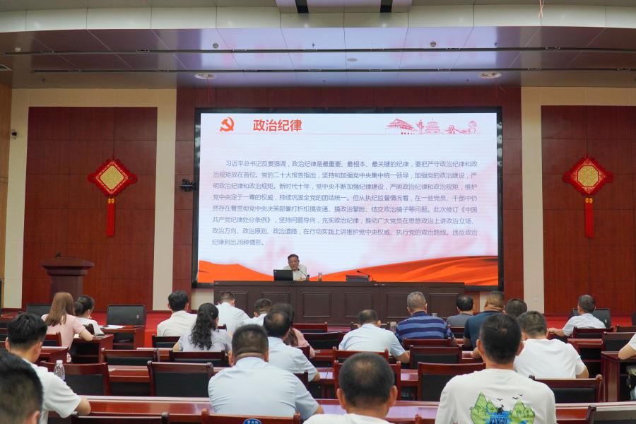 在中國(guó)共產(chǎn)黨成立103周年之際,市供水公司舉辦黨紀(jì)學(xué)習(xí)教育專(zhuān)題黨課。公司黨支部書(shū)記、董事長(zhǎng)林曉海以“恪守六大紀(jì)律,筑牢思想根基”為主題,為全體黨員講授專(zhuān)題黨課。黨課緊扣“六大紀(jì)律”,結(jié)合典型案例分析,重點(diǎn)解讀新增和修改內(nèi)容。