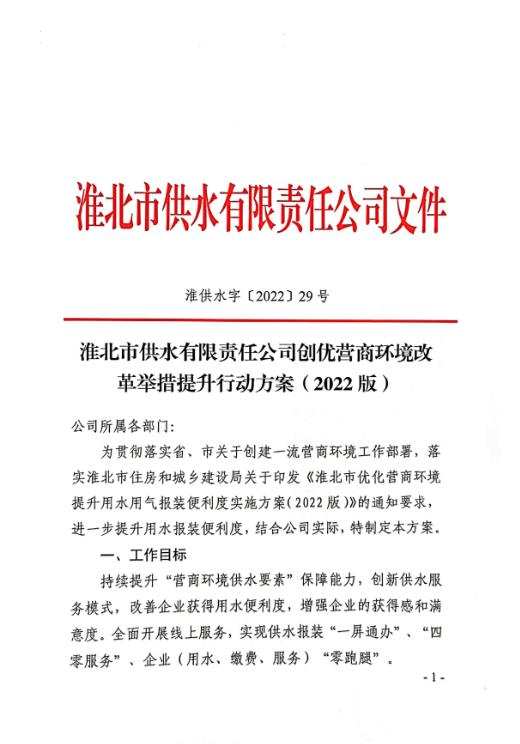 淮北市供水有限責(zé)任公司創(chuàng)優(yōu)營(yíng)商環(huán)境改革舉措提升行動(dòng)方案2022版